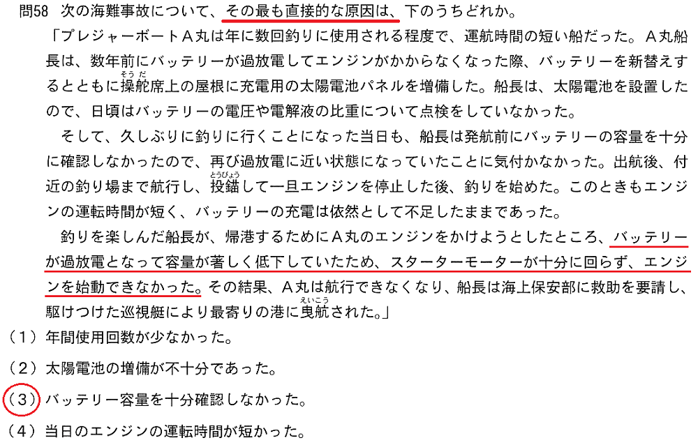 近年は身の回りはバッテリだらけですが船のバッテリはスマホとは別物だと考えましょう。スマホなどのリチウムイオン電池は電源に差せばあとは自動で充電してくれますし自動車もそんな感じです。バッテリーは化学反応を利用したもので細かい制御が必要ですがスマホやPCではそれを自動でやってくれています。文章では分かりませんがこの事例、過放電ではなく過充電でバッテリを傷めて弱っていたんだと思います。出港時にエンジン始動できたということは往路の時間で充電はしていたはず。その後バッテリが上がったということは弱っていたということ。恐らく太陽光パネルをバッテリに直繋ぎしていたんじゃないでしょうか。太陽光パネルは思ったより発電します。チャージコントローラーを介して繋がないと充電制御が効かなくて太陽が出ている間四六時中充電しっぱなし→過充電→バッテリを壊す。DIYあるあるです。キャンプ用品と違い船舶用に売られている太陽光パネルは設置工事の必要性から充電制御機は別売が多いので気を付けないといけません。あくまで私の修理業経験からの推測ですが。